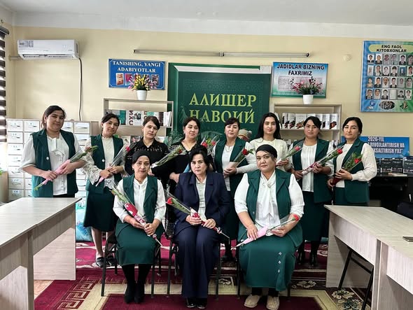 Бир мақсад йўлида бирлашган, илм ва маърифатга хизмат қилаётган фидойи аёллар жамоаси. Ҳар бирингизнинг меҳнатингиз китобхонликни тарғиб этиш ва маънавиятни юксалтиришга хизмат қилади. Бирдамлик ва меҳрга тўла жамоамиз доимо шундай файзли ва барокатли бўлиб қолсин.
