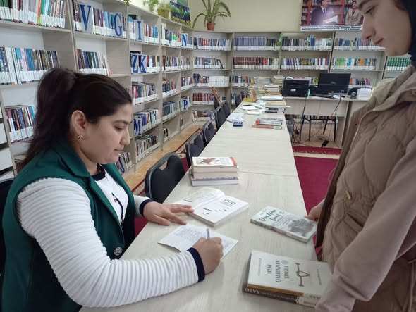 Denov tuman Axborot-kutubxona markazi xodimlari tomonidan kutubxonaga kelgan kitobxonlarga xizmat koʻrsatish jarayonidan